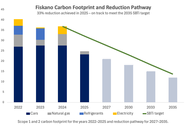 Fiskano commits to reduce absolute scope 1 and scope 2 GHG emissions 63% by 2035 from a 2024 base year, and to measure and reduce its scope 3 emissions.
